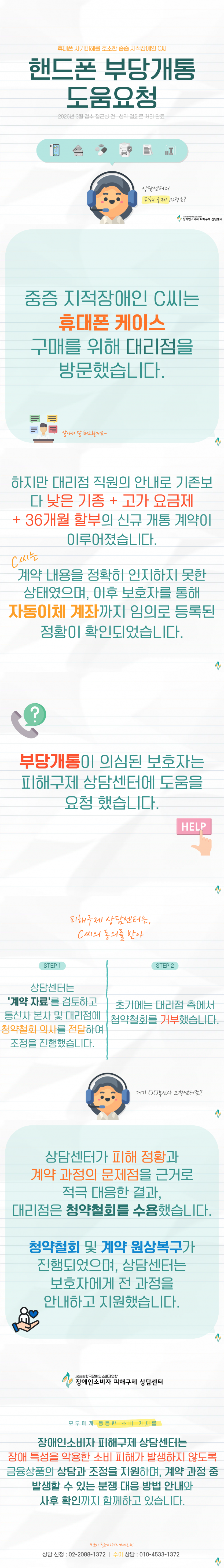 보호자로부터 계약 관련 자료를 전달 받아 피해 상황을 확인하고, 통신사 본사 고객센터와 대리점 측에 청약철회 의사를 전달하며 조정을 진행했습니다.