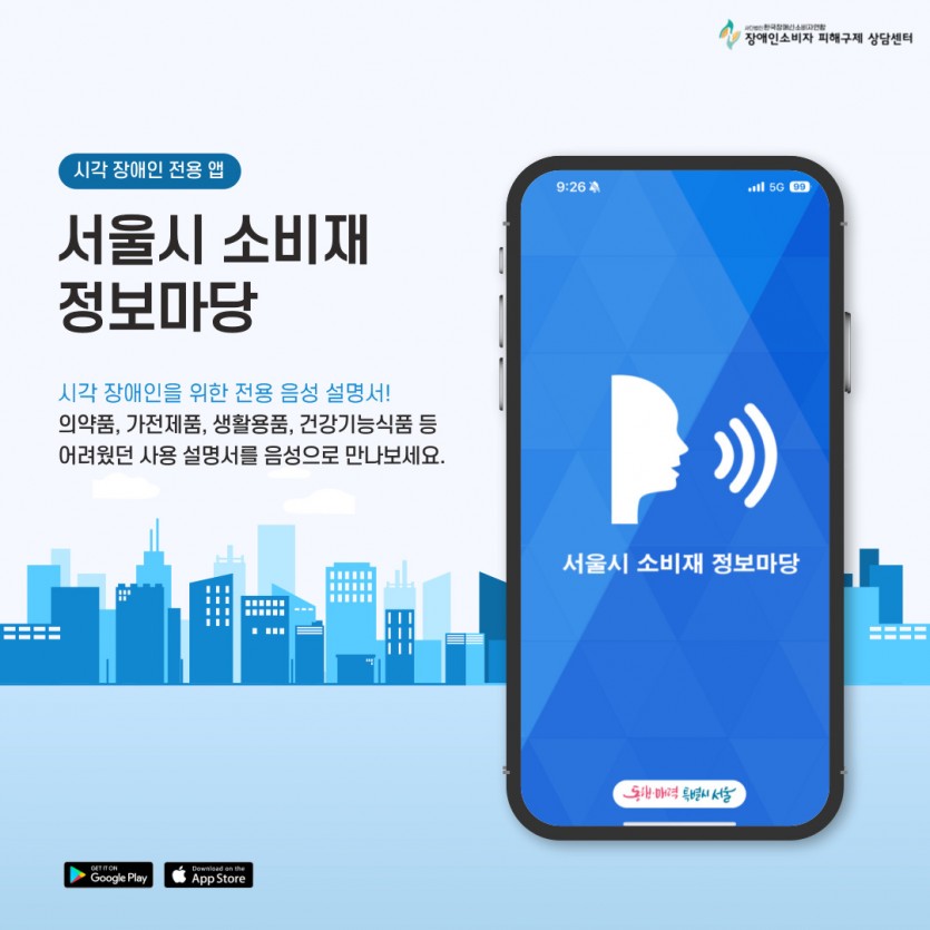 시각장애인의 편의를 위해 서울시가 개발하고, 우리 센터가 운영하는 앱 <서울시 소비재 정보마당>을 소개합니다!